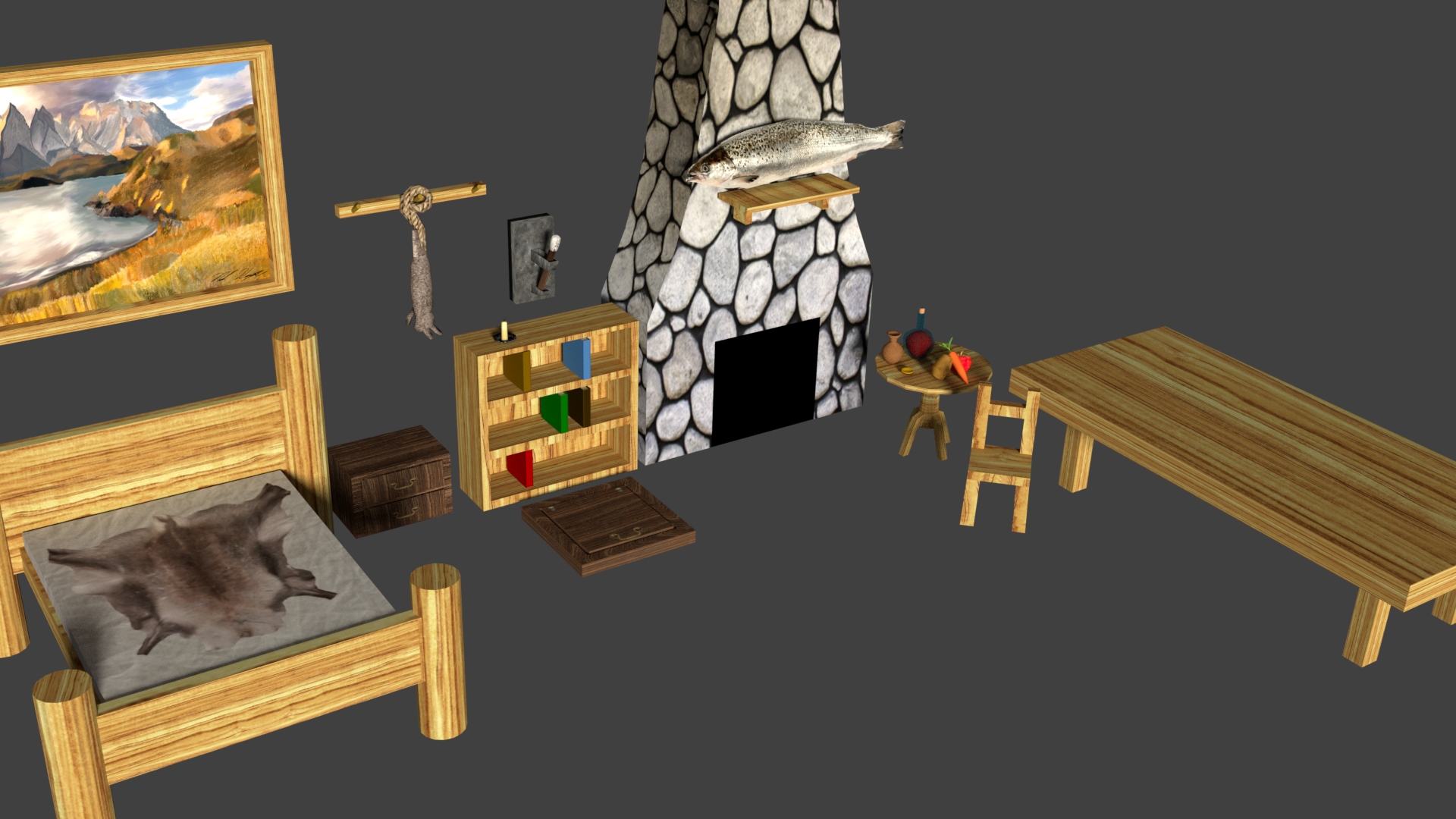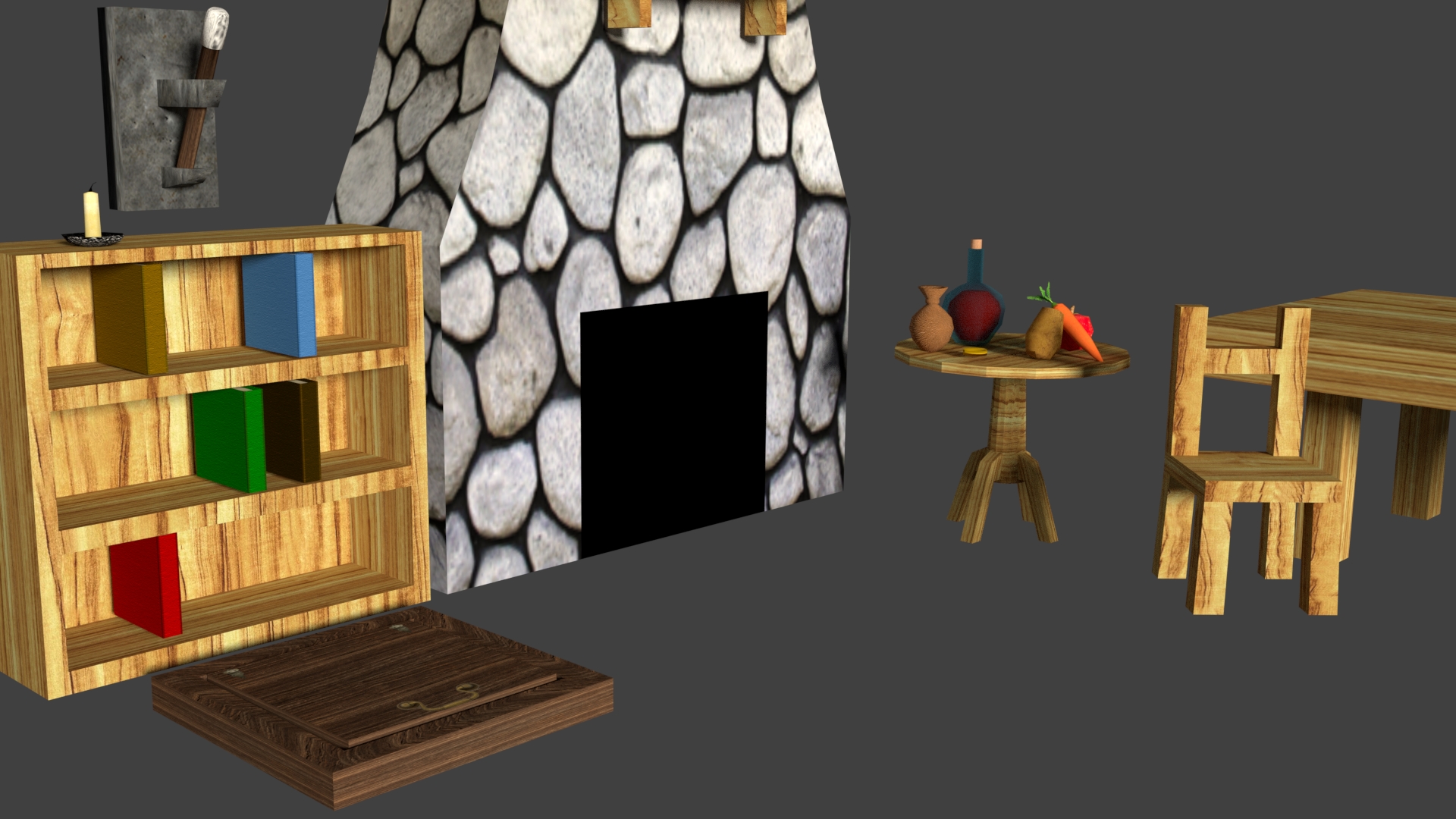 Here are some screenshots from my inside cottage art assets.