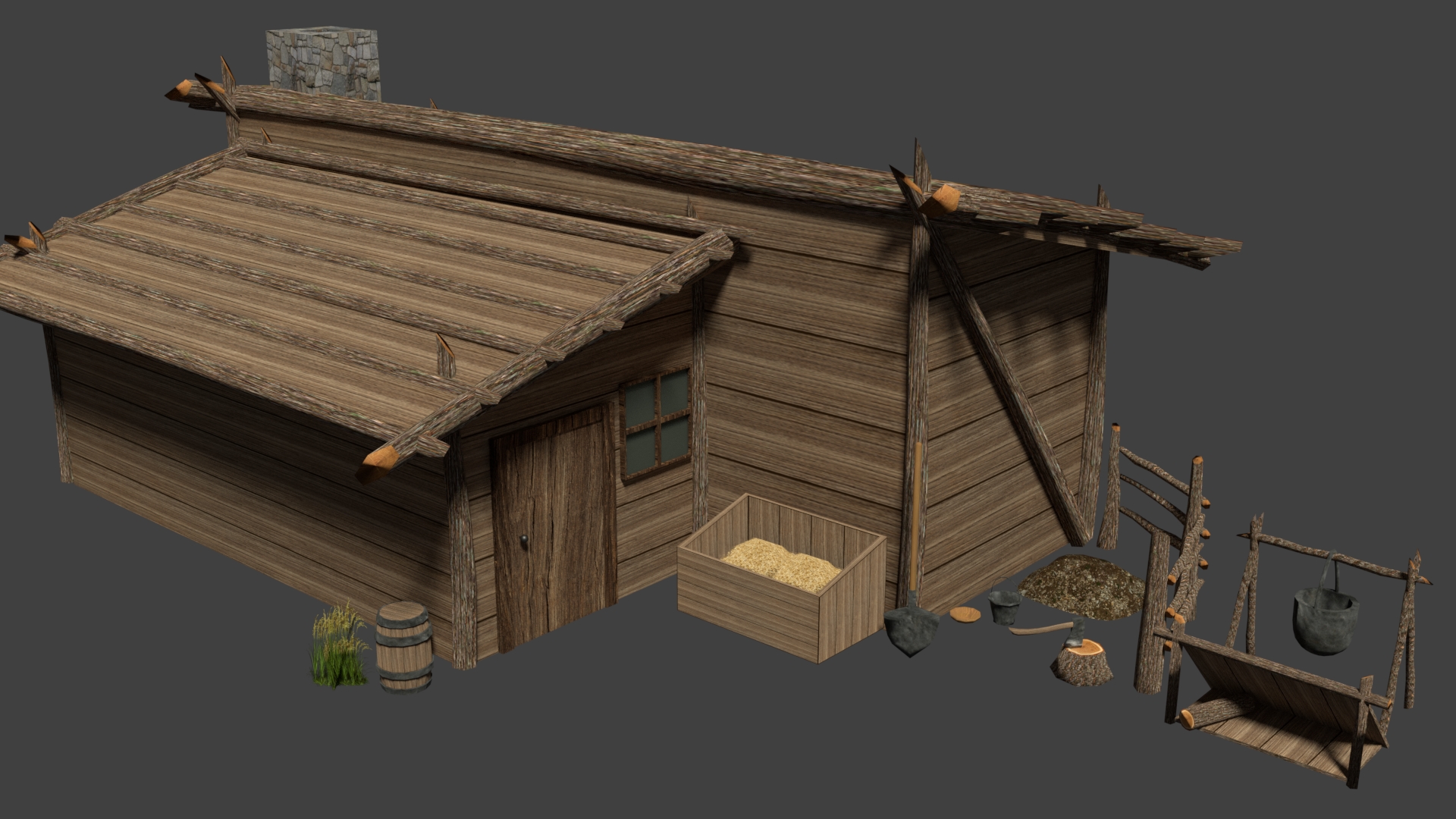 Here are some screenshots from my cottage art assets.