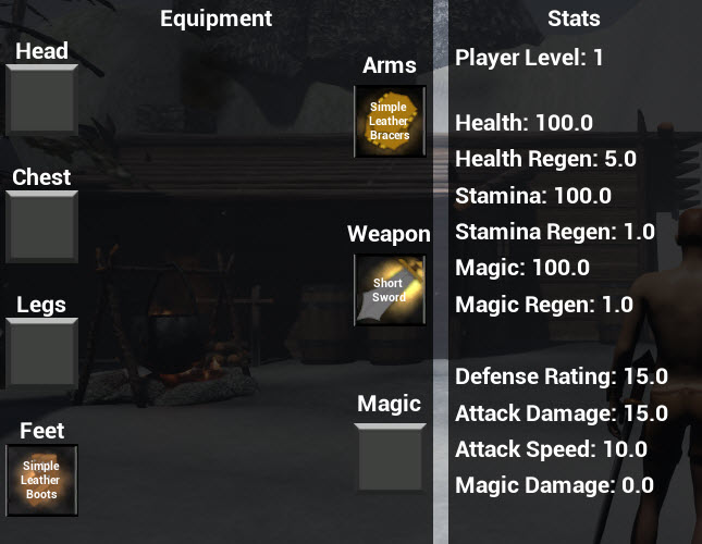 I have finished my Main Character, base weapons and armor, the inside cottage assets, and built the inside of the cottage. I am also going a little over board and I have built a full health, magic, stamina, experience, and skill system. As well a fully working saving and loading system, quest system, and I am starting to work on NPCs, and Enemy AI’s.I am now starting to work on the top of the mountain zone (which is a cave), my NPC (old man) who will be in the cottage he is almost complete, and finally my base enemy zombie. His code is written now I will make a couple variations of him so I can have some different enemies in the game. Enjoy!!!
