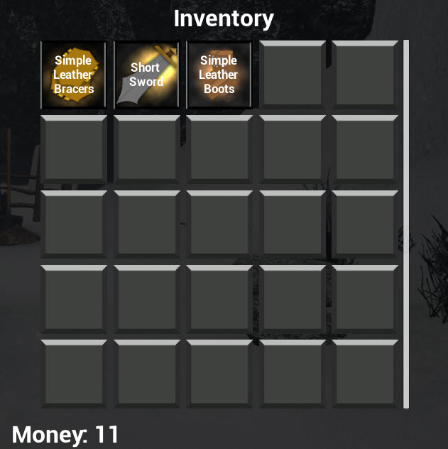 Below are some screenshots of the Inventory, Equipment, and Skills systems.