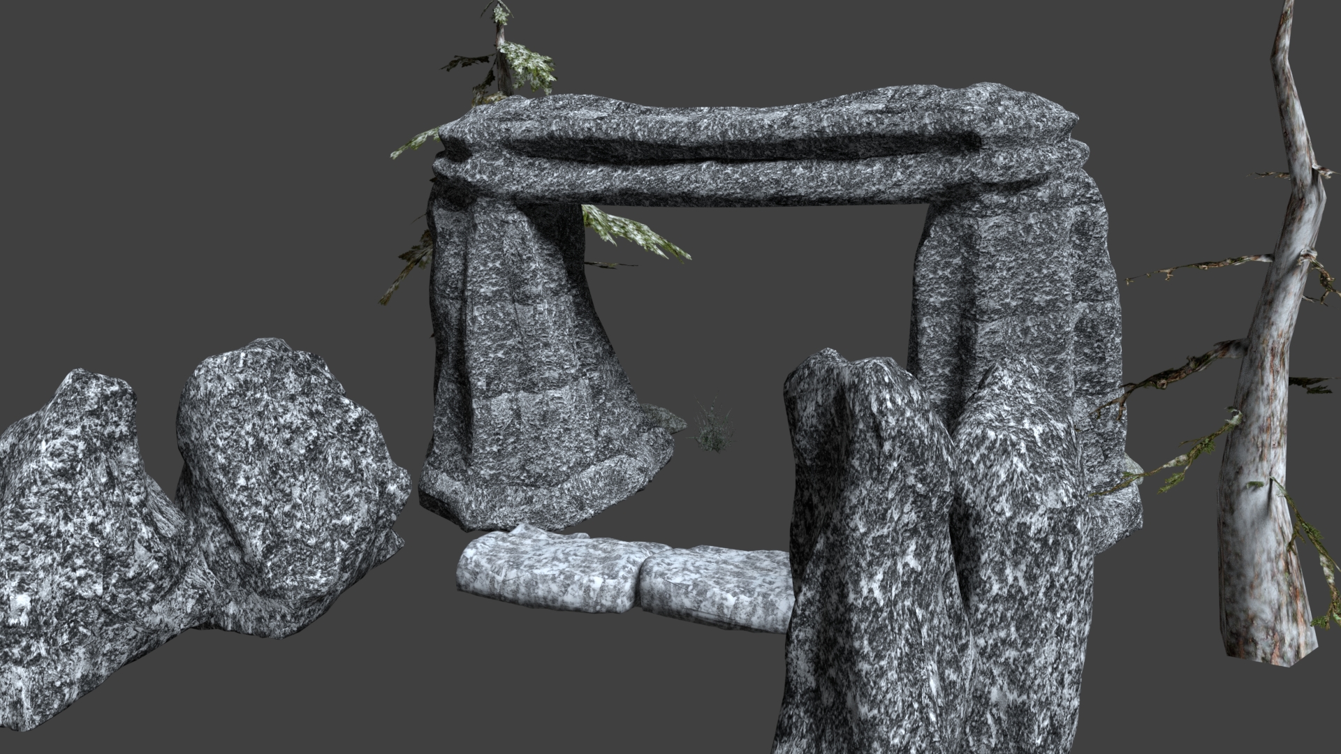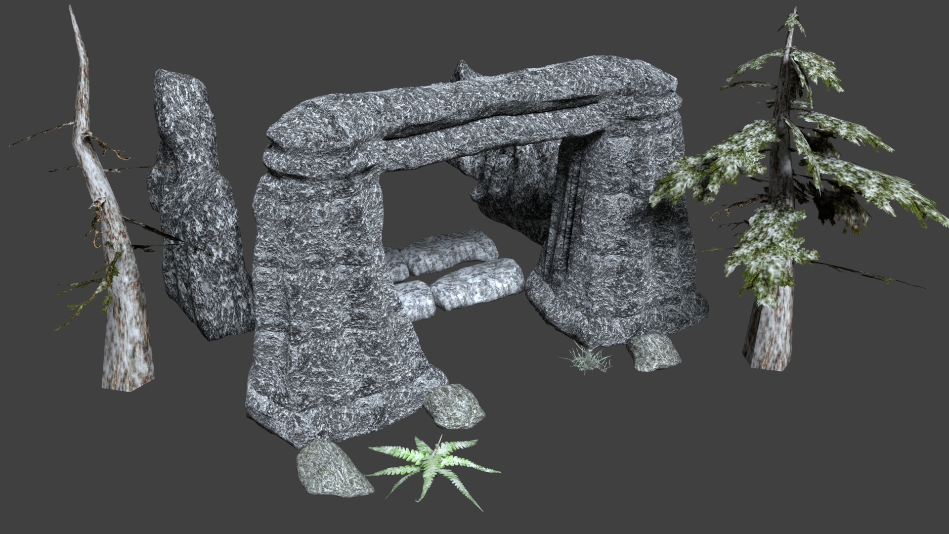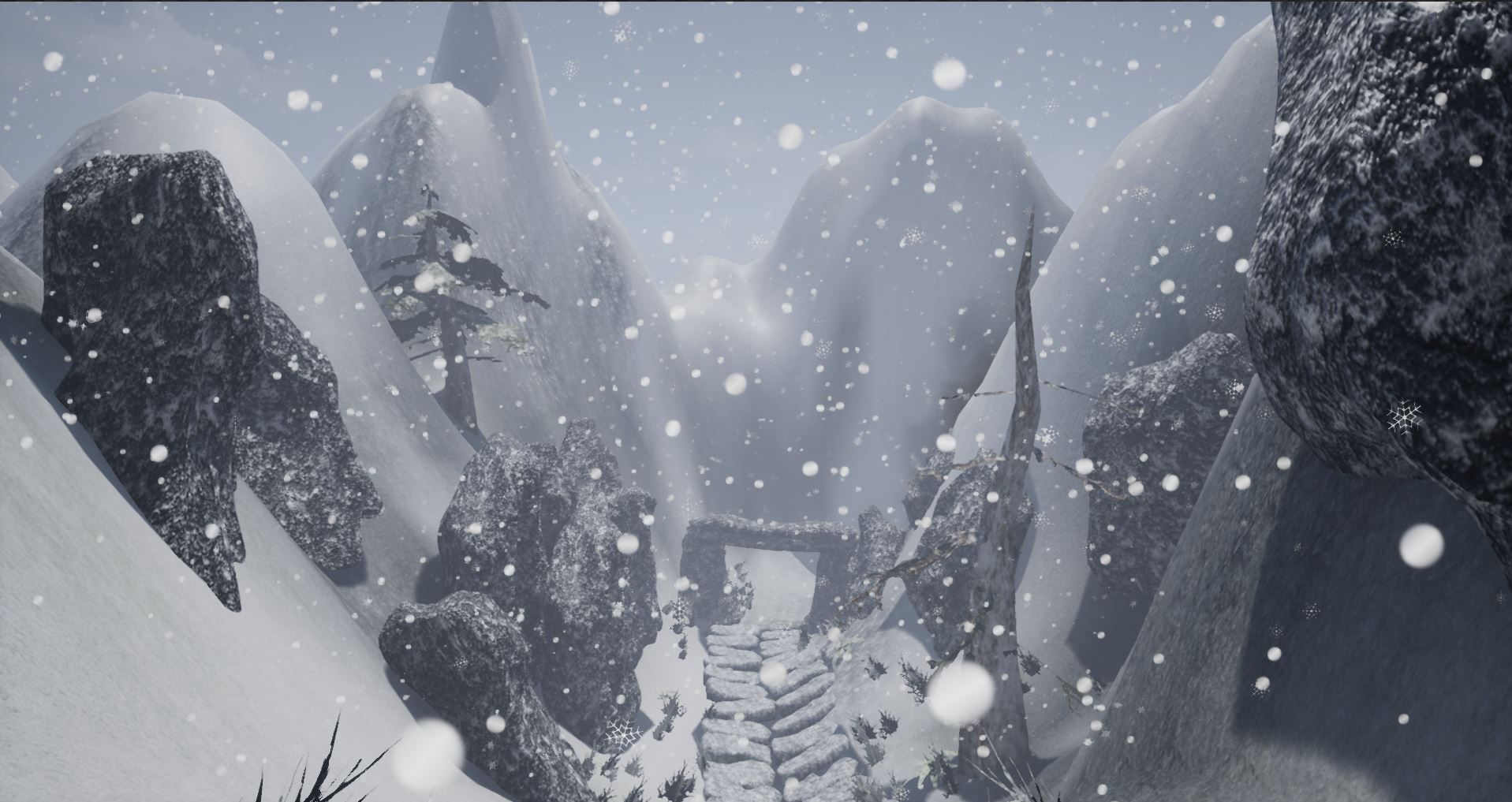 Here are some screenshots from my winter mountain art assets.