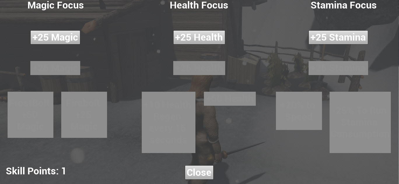 - Skill trees no icons yet but the base and backend of the skill trees are working.